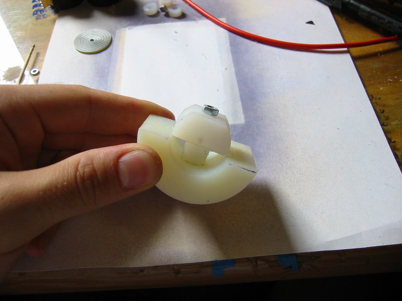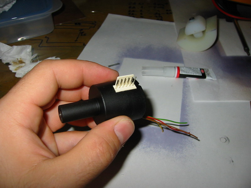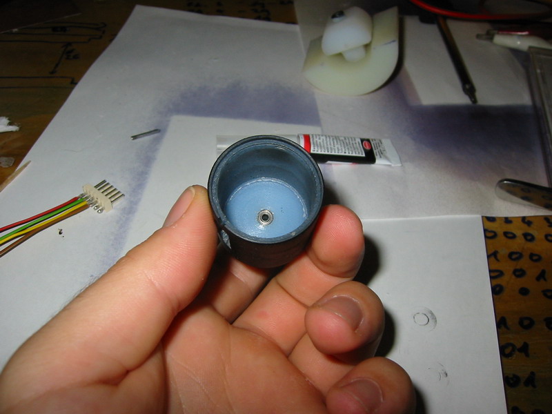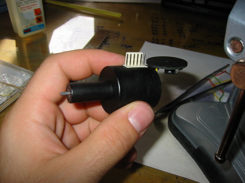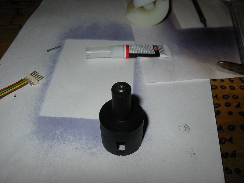Az első lépés a szkenner ház kialakítása, melyet Én a megmunkálás könnyedsége miatt Danamidból készítettem, otthon egy kis műszerész esztergán bárki könnyen el tudja követni. A méreteket most nem írom le, mert bárki bármilyen elképzelésben, bármilyen formában, bármekkora méretben megcsinálhatja. Nekem ez a szkenner 40mm hosszú és a nagyobbik átmérője 30mm. Miután megvan a szkenner ház, benne a csapágy fészkekkel, fessük le az egész szkenner házat, feketére, vagy csináljuk az egészet fekete danamidból. Ha megvan a festés akkor ragasszuk be a csapágyakat pillanat ragasztóval! Vigyázzunk hogy a csapágyba mégcsak véletlenül se menjen egy csepp ragasztó sem, mert pikk pakk forgásmentes csapágyunk lesz (nekem sikertült már :O)