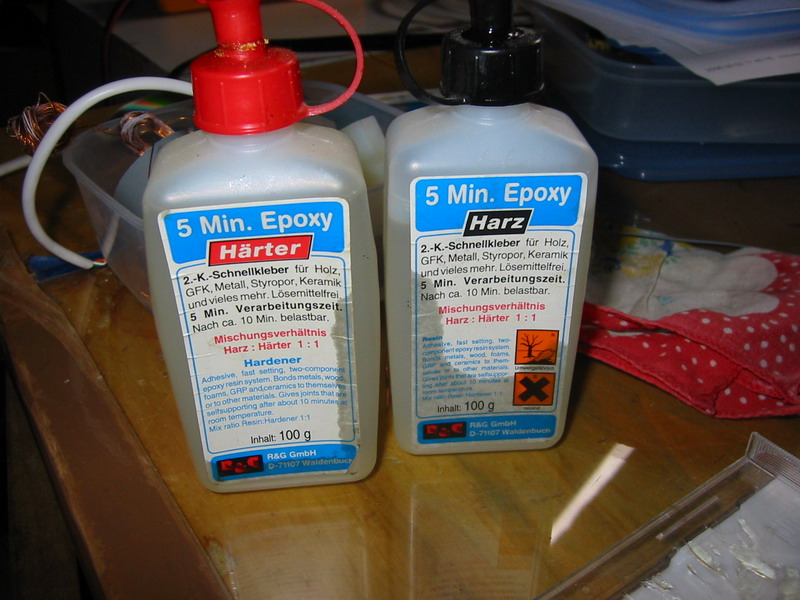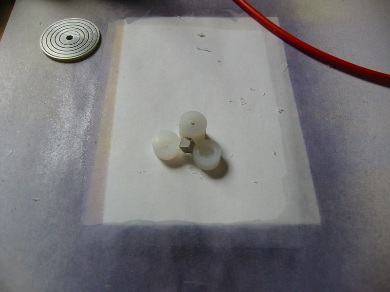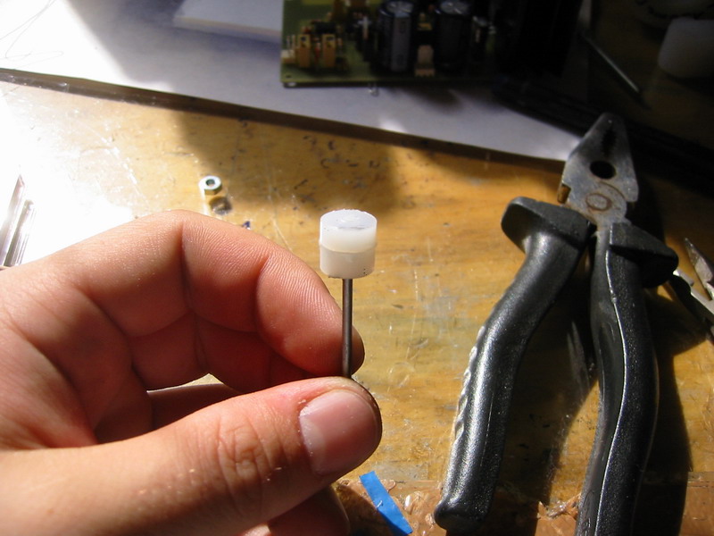 A csapágyak beragasztásakor nem árt betenni a tengelyt, mivel az "meneszti a csapágyakat" igy biztos hogy nem fogjuk csámpásan beragasztani a csapágyakat. Tengelynek én egy 2mm átmérőjű hegesztő pálcát használok, mármint láng hegesztő pótanyagot. Asszem adtam 2 db 1 méteres szálért kemény 40Ft ot a vasas boltban, tökéletesen megteszi! szóval ha megvan a csapágyak beragasztása, akkor meg kell határozni hogy milyen hosszú tengelyt szeretnénk, berakni. Nem célszerű túl hosszúra hagyni a tengelyt mivel az is súly. Ha megvan a tengely rá kell ragasztani az egyik végére a mágnest. Nekem mivel négyzet alapú hasáb Neodímium mágnesem volt, igy esztergáltam neki egy kis befogót, amivel tudom meneszteni a tengelyre. Ezen ragasztásoknál már használjunk inkább kétkomponensű epoxy műgyantát, mivel az sokkal erősebb és szívósabb kötést biztosít. Javaslom az 5 vagy 10 perces epoxy használatát, és akkor nem kell órákhosszat várni a ragasztó száradásával.