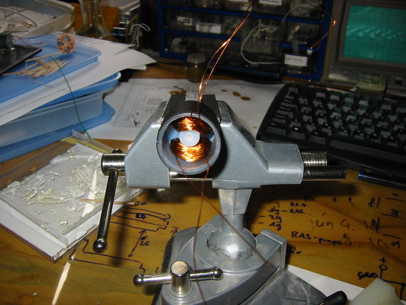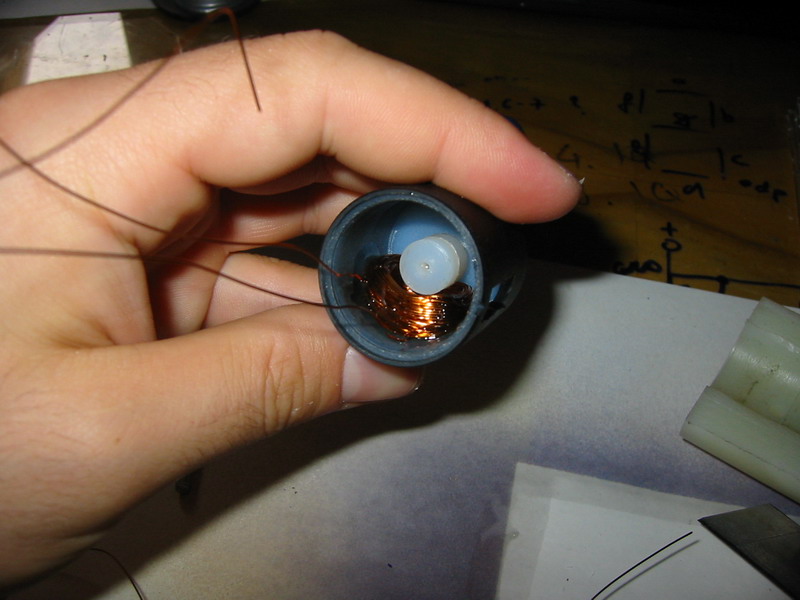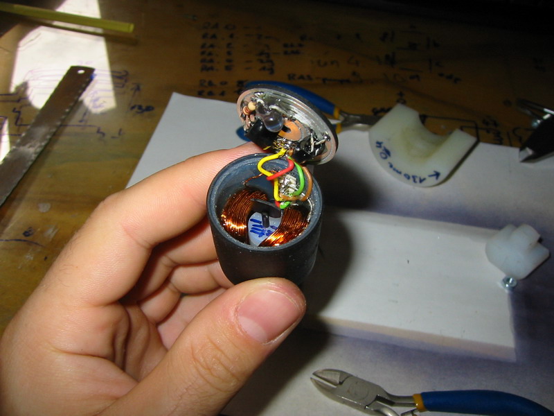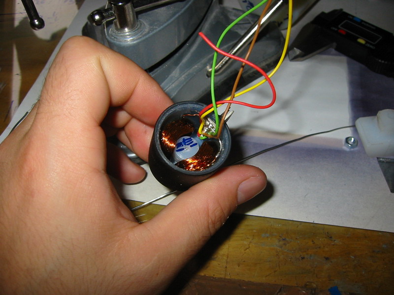 Ha a tengely is készen van akkor jöhet a tekercs gyártása, én csináltam hozzá egy szerszámot ami "szimulálja" a szekenner belsejét, és erre tekerem fel a drótot, így nem okoz gondot a tekercs elhelyezése a szkenner testben. A tekercsek egyenként 130 menettel bírnak és 0.4 mm es rézhuzalból készítettem őket. A meneteket szintén epoxyval fixáltam. A szkenner házba tettem egy csatlakozót a könnyed szerelhetőség és a kompatibilitás jegyében. Ha minden elkészült kezdődhet az össze szerelés.