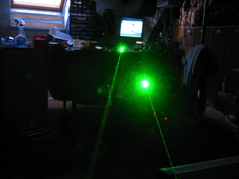 A következő képek sorrendben, legkissebb teljesítmény, közepes teljesítmény, full power, majd egy 100mW os modul mellet szemből fényképezve!